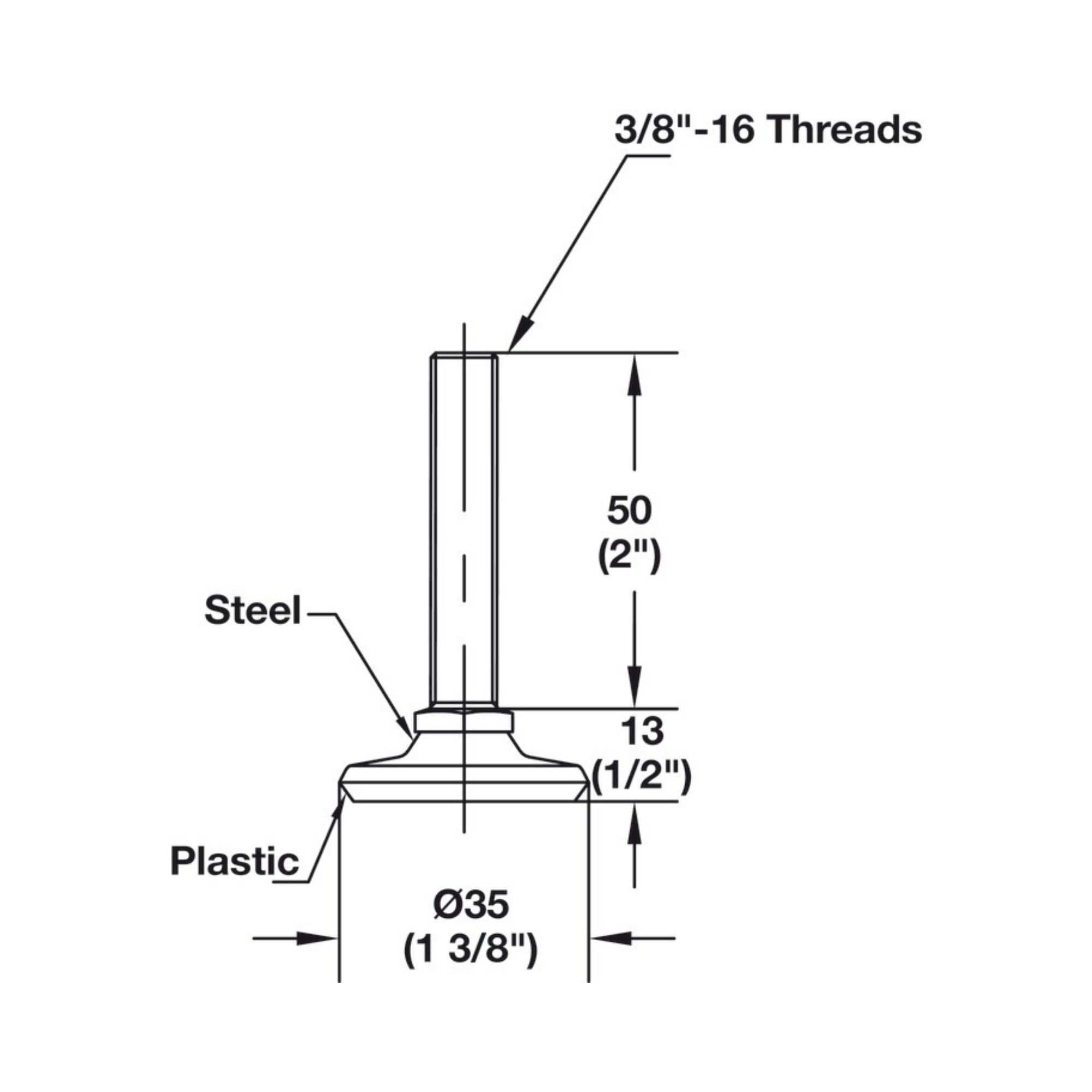 | Color/finish | Leg: Nickel-plated, brushed, resin epoxy-coated (matt); Threaded insert: Matt; Leveler: Matt & white |