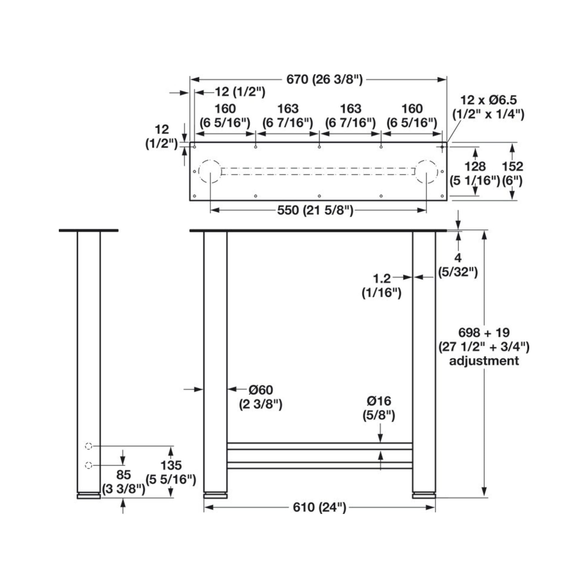 Häfele - Support Leg, 610 mm Width
