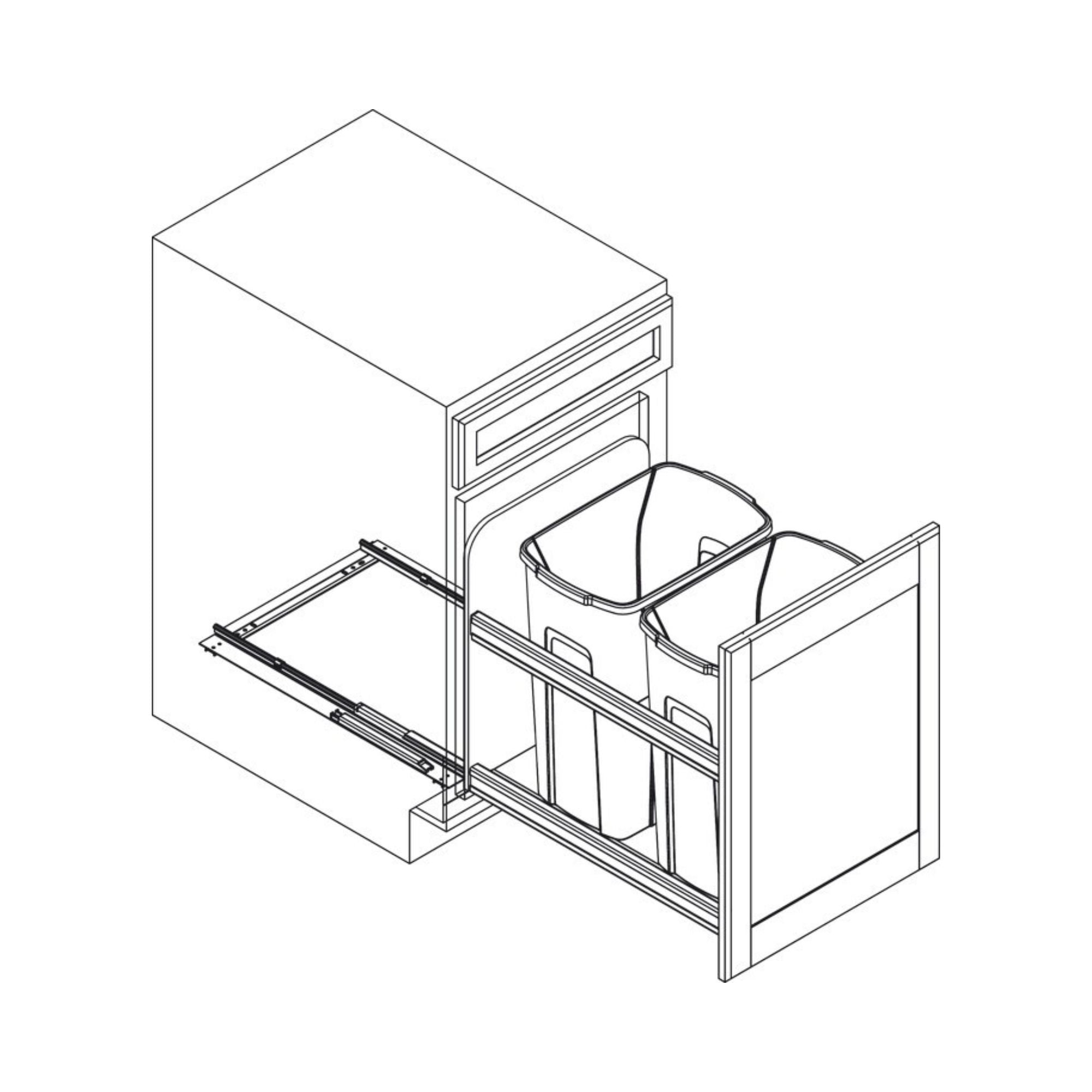 Knape and Vogt - Waste Bin Pull-Out, Bottom Mount, Double, 50 Qt, Undermount Slide with Soft-Close