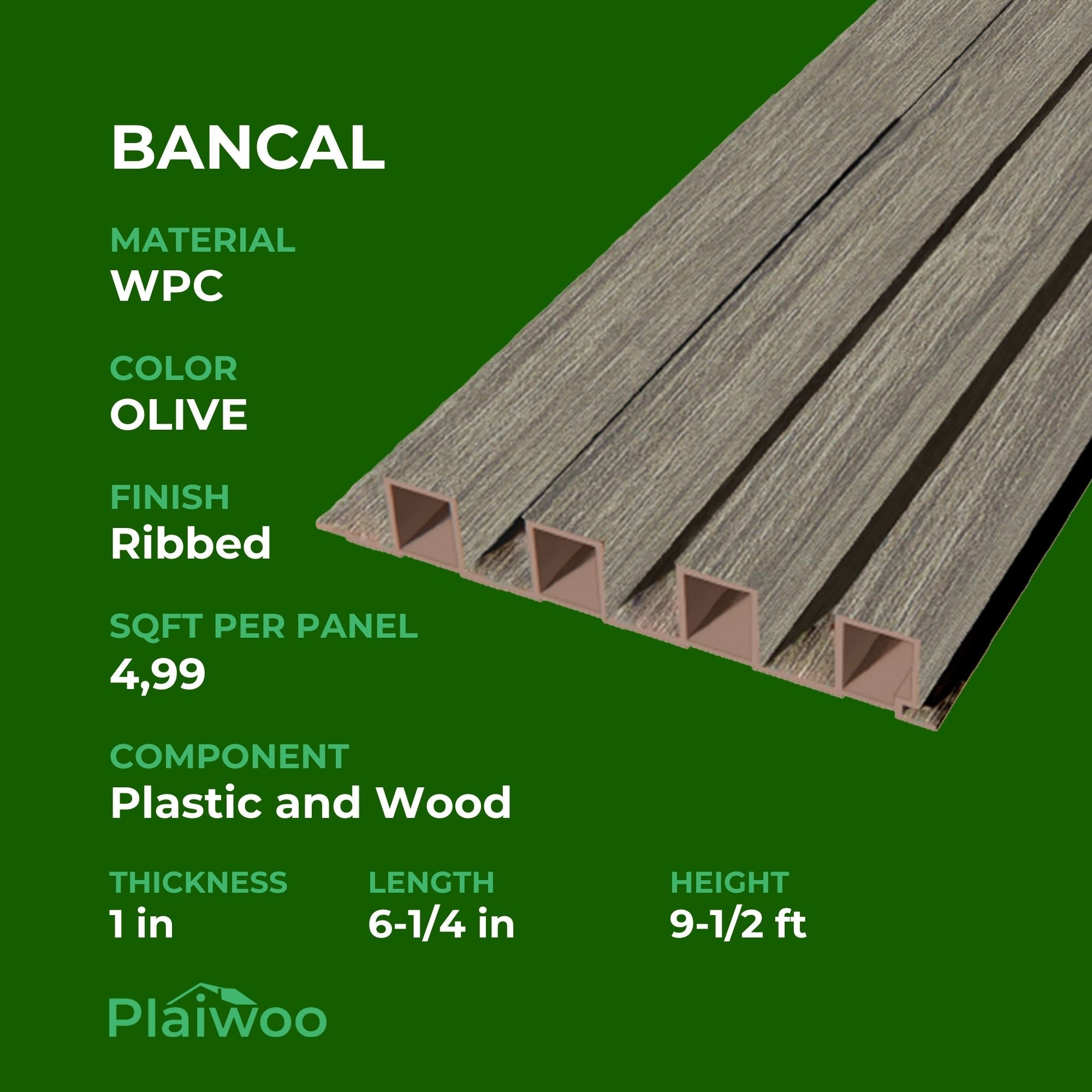 Olive Decorative Wall Panel - WPC Bancal (6 1/4 ft x 9 1/2 ft x 1 in)